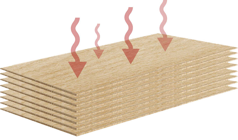 層層夾芯經(jīng)過阻燃劑的高壓浸泡長達(dá)4小時,保證木纖維的完全滲透